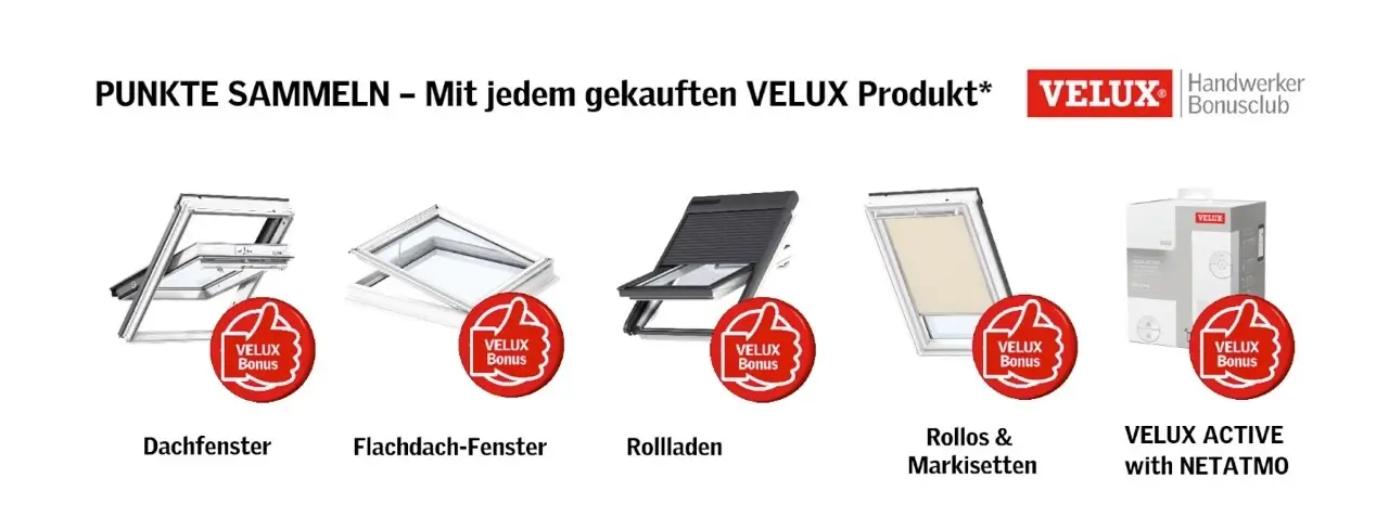 Es gelten die Teilnahmebedingungen des VELUX Handwerker Bonusclubs.
